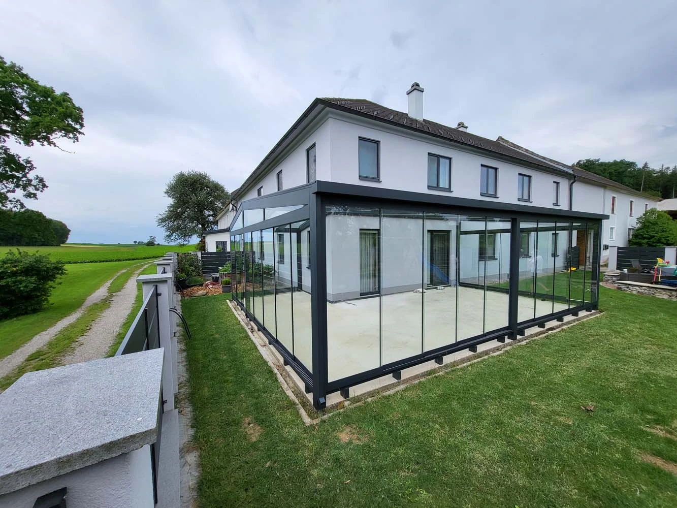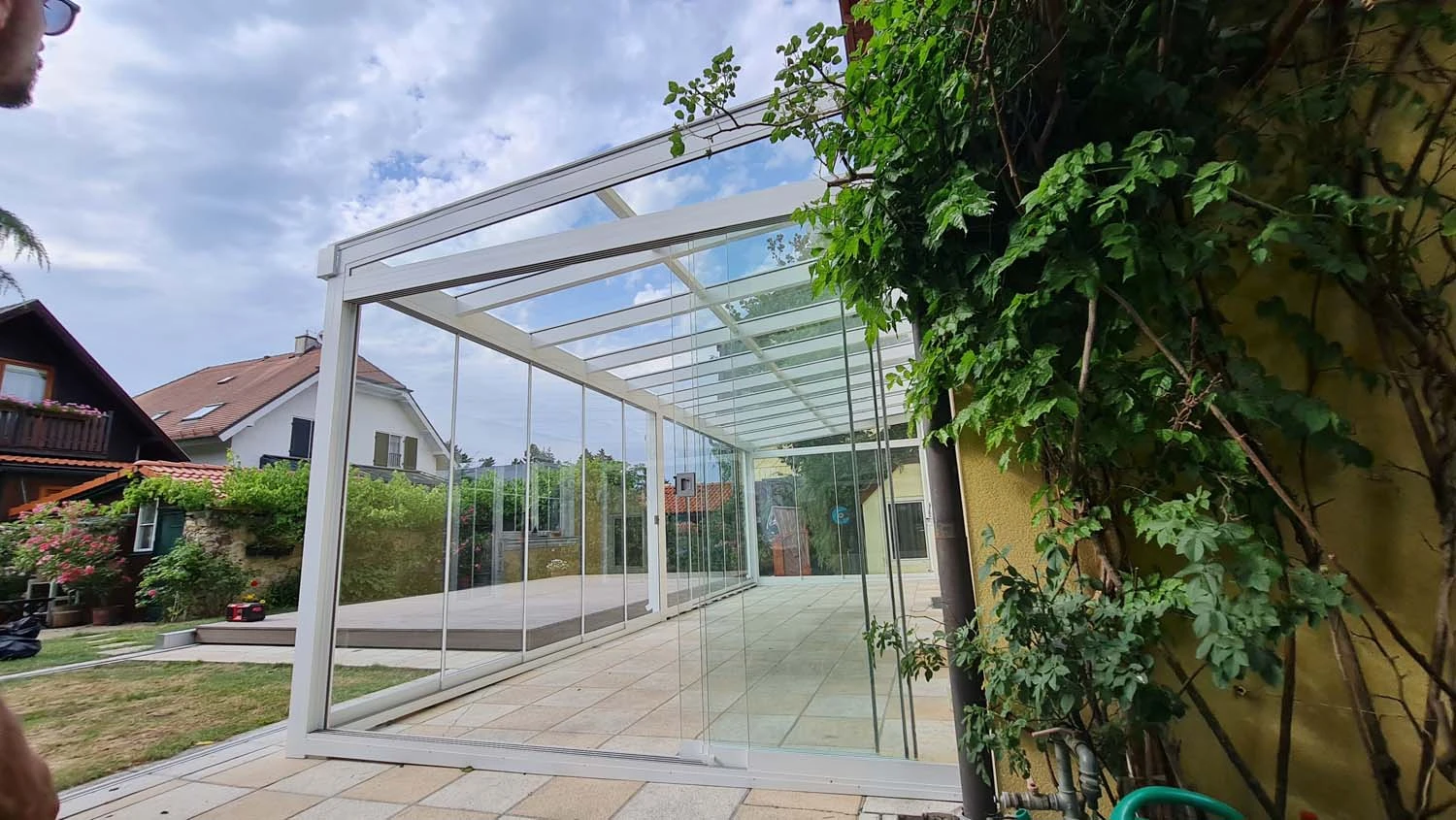 Das ist häufig möglich! Wenn Sie bereits eine Terrassenüberdachung von uns oder einem anderen Hersteller haben, können wir diese oft mit seitlichen Glaselementen (fest, als Schiebe- oder Falttüren) zu einem vollwertigen Sommergarten erweitern. Gerne prüfen wir die technischen Möglichkeiten bei Ihnen vor Ort.